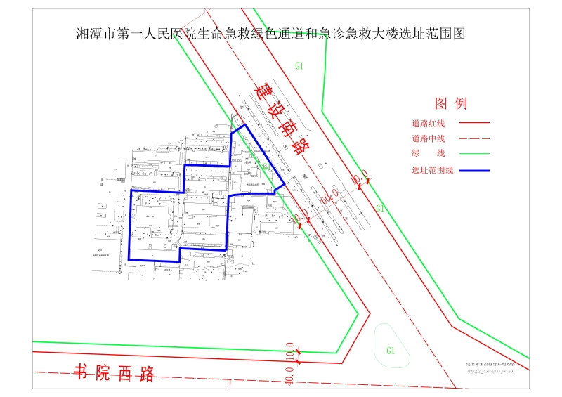 急診急救大樓及生命急救綠色通道項(xiàng)目擬選址于位于岳塘區(qū)建設(shè)南路以西、書院路以北,總用地面積為9509.08平方米。