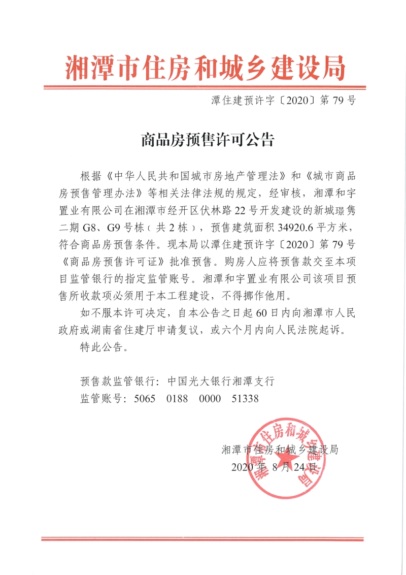 關(guān)于新城璟雋二期G8、G9號(hào)棟(共2棟)預(yù)售許可公告