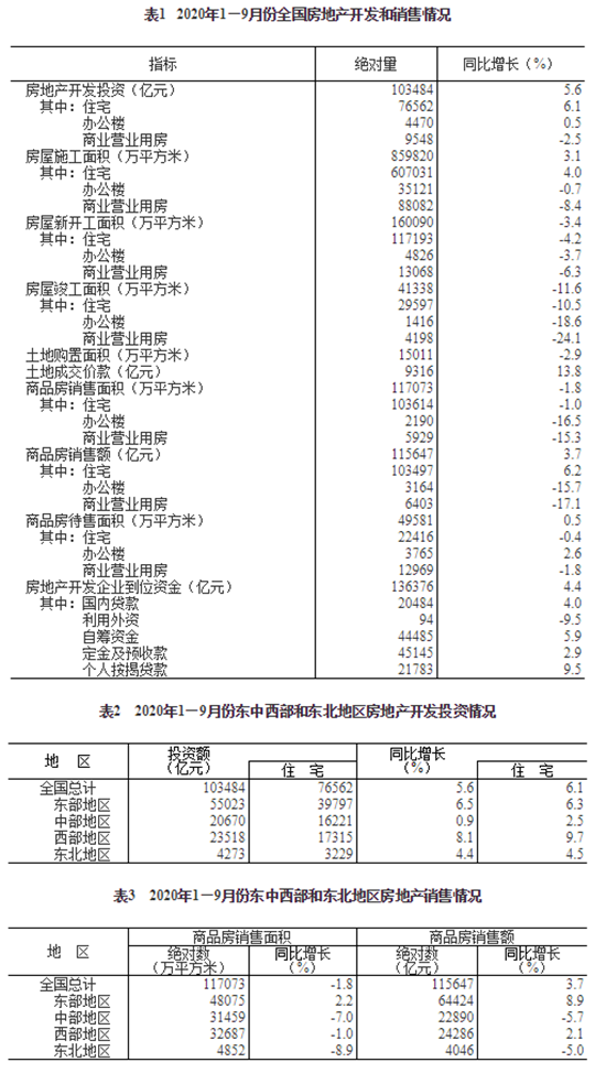 1—9月份,全國(guó)房地產(chǎn)開發(fā)投資103484億元,同比增長(zhǎng)5.6%,增速比1—8月份提高1.0個(gè)百分點(diǎn)。其中,住宅投資76562億元,增長(zhǎng)6.1%,增速提高0.8個(gè)百分點(diǎn)。