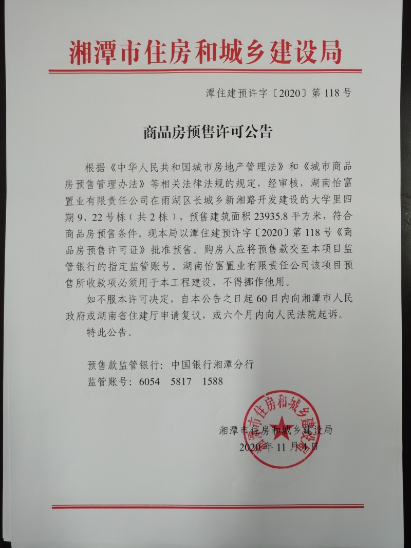 關于大學里四期9、22號棟(共2棟)預售許可公告