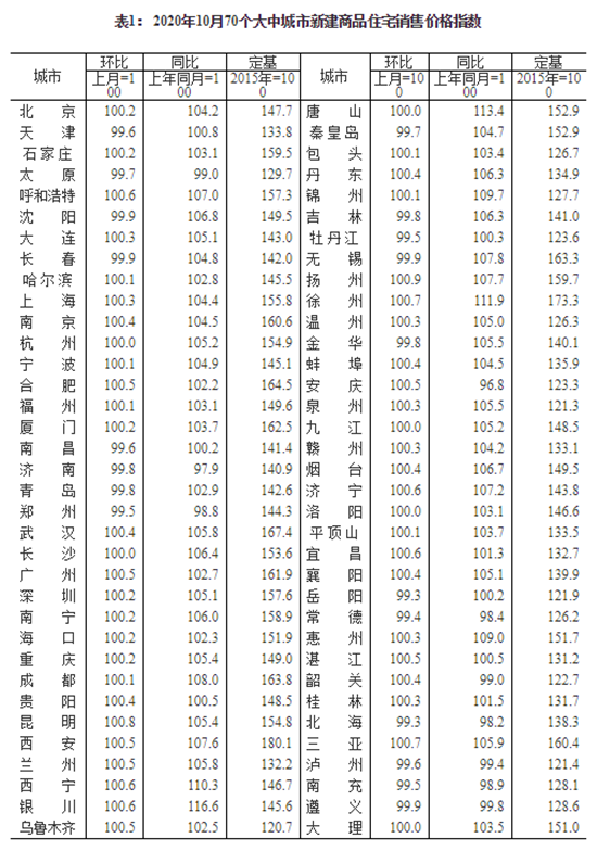 ——國家統(tǒng)計局城市司高級統(tǒng)計師繩國慶解讀2020年10月份商品住宅銷售價格變動情況統(tǒng)計數(shù)據(jù)