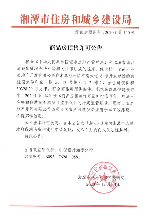 關(guān)于碧桂園大學(xué)印象二期5、13號(hào)棟(共2棟)預(yù)售許可公告
