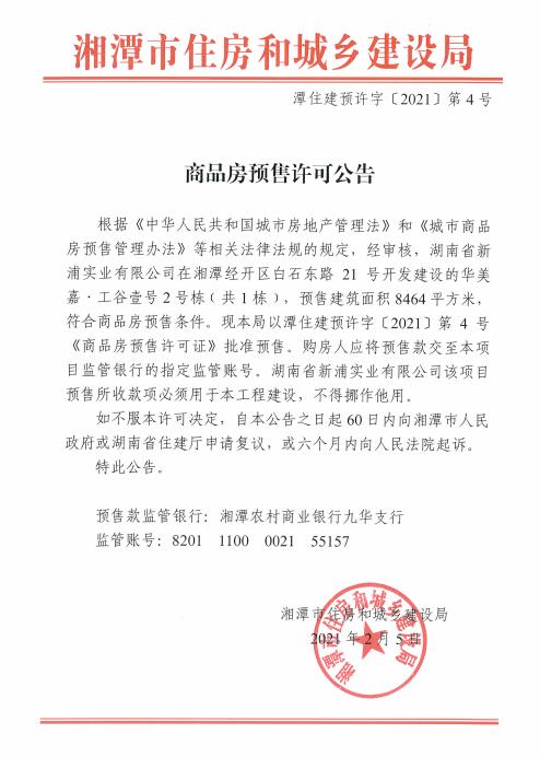 關(guān)于華美嘉·工谷壹號2號棟(共1棟)預(yù)售許可公告