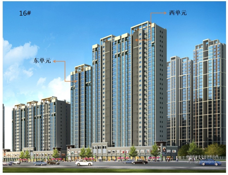 東單元(1-2層為商業(yè),3-22層為住宅)