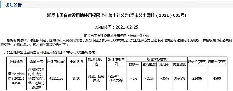 ▲湘柴棚戶區(qū)二期地塊掛牌公告