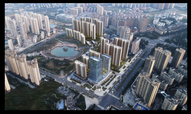 2.酒店外立面采用玻璃幕墻、合金線條和鋁板做為主要材料,通過(guò)斜切的手法突出時(shí)尚、現(xiàn)代、精致的設(shè)計(jì)理念,彰顯五星級(jí)酒店的品質(zhì)與地位。住宅外立面采用新東方風(fēng)格樣式,搭配采淺暖灰色真石漆和質(zhì)感涂料,以模數(shù)化的立面網(wǎng)格打造簡(jiǎn)約高端的立面形象,同時(shí)與周邊與建筑相協(xié)調(diào)。