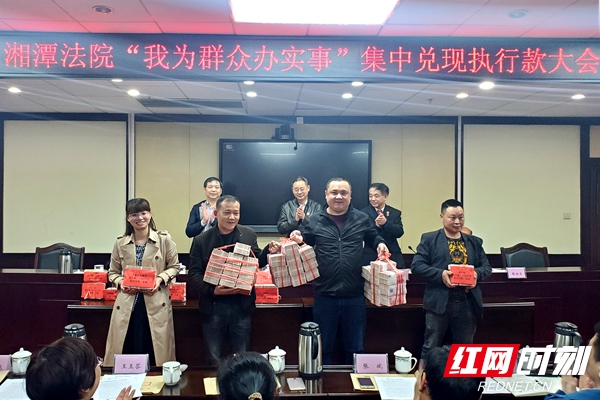 為深入開展政法隊伍教育整頓和黨史學習教育,切實做好教育整頓和黨史學習教育成果轉化,湘潭兩級法院結合工作實際,積極開展“我為群眾辦實事”活動,努力為群眾解決愁難急盼的具體問題。4月16日上午,湘潭法院“我為群眾辦實事”集中兌現執(zhí)行款大會在市中級人法院召開。18位申請執(zhí)行人領到了期盼已久的768.5萬元的“血汗錢”。