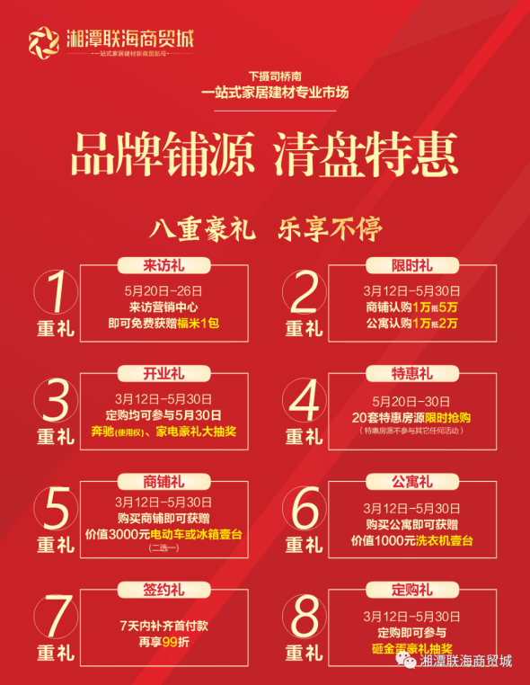 3月12日—5月30日,定購商鋪、公寓均可參與5月30日開業(yè)大抽獎(jiǎng):奔馳(使用權(quán))、品牌家電,抽獎(jiǎng)抽到手軟,豐厚豪禮送不停!