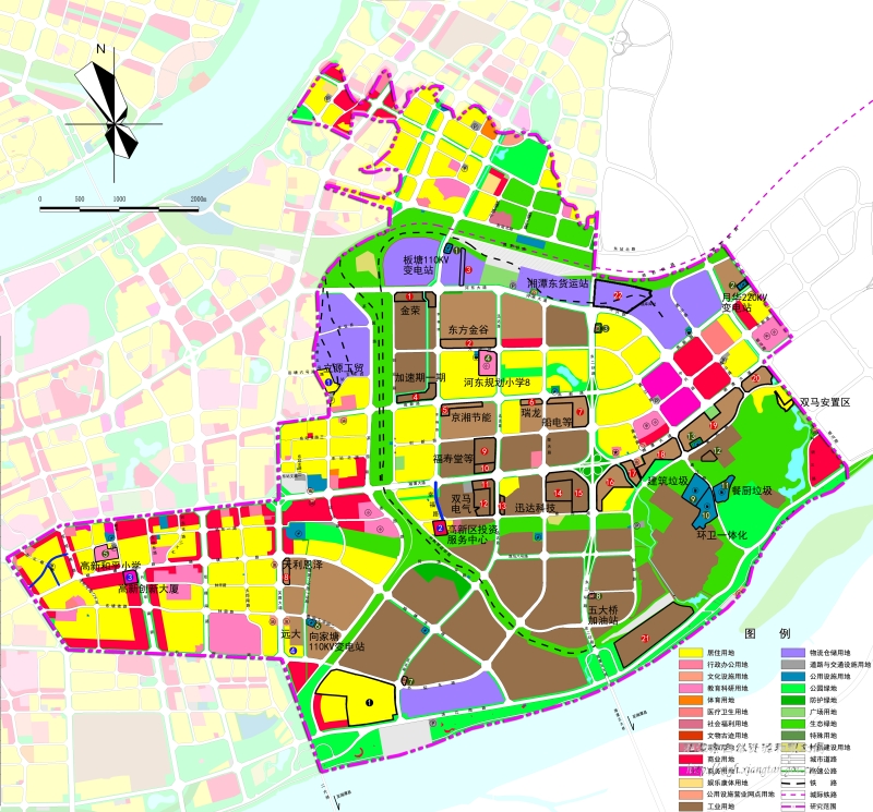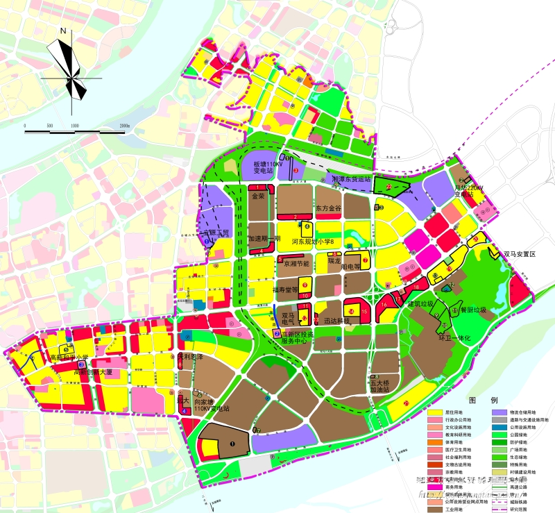4、尊重現(xiàn)實(shí),解決歷史遺留問題,將遠(yuǎn)大住工●花漾年華3.6公頃的商業(yè)用地調(diào)整為二類居住用地,已批證的湘潭立源工貿(mào)有限公司3.77公頃的物流倉儲用地調(diào)整為二類居住用地。已建設(shè)的高新區(qū)投資服務(wù)中心1.85公頃的行政辦公用地調(diào)整為商業(yè)用地,已建設(shè)的高新區(qū)創(chuàng)新大廈2公頃的行政辦公用地調(diào)整為商務(wù)用地。