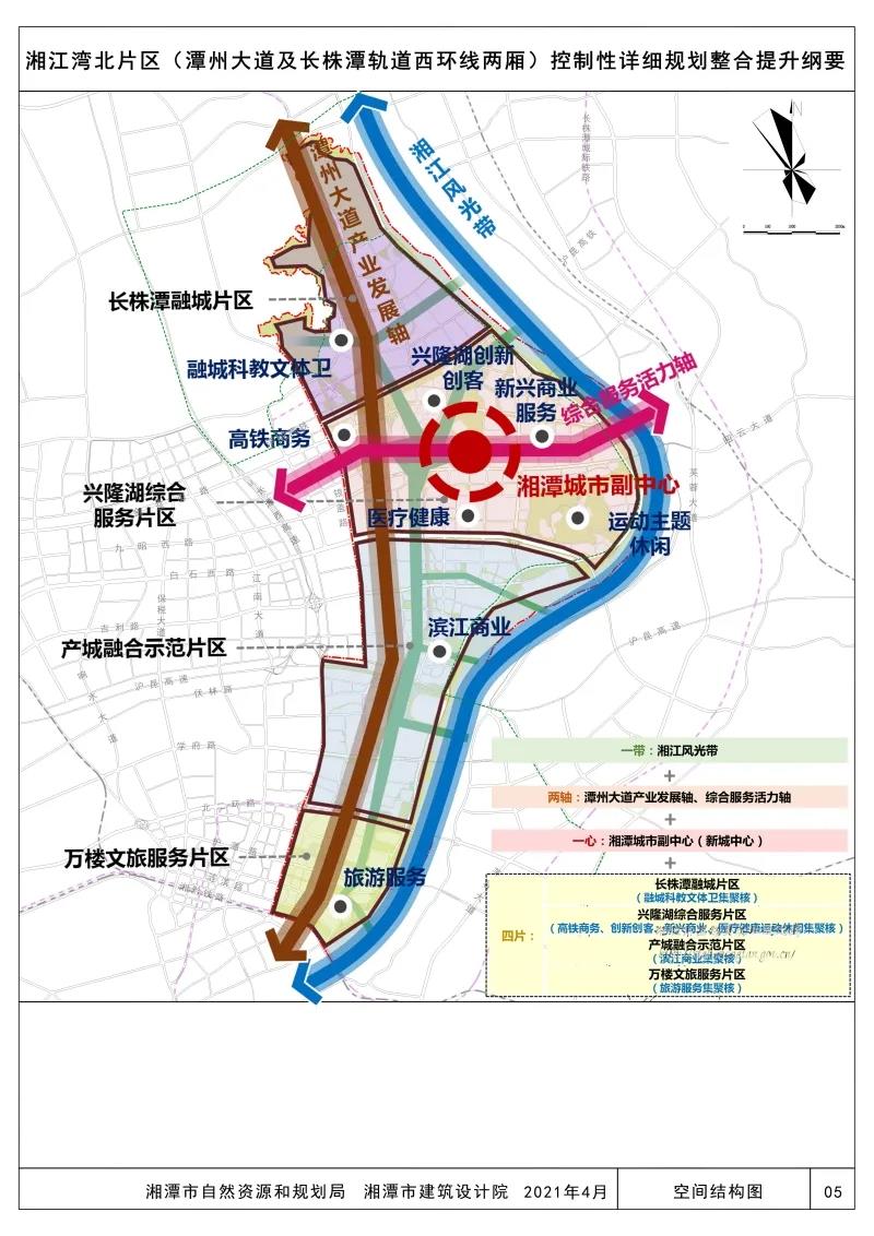 利用湘潭北灣的灣區(qū)優(yōu)勢,打造集高鐵商務(wù)辦公、興隆湖創(chuàng)新創(chuàng)客、濱江新興商業(yè)、醫(yī)療健康、運動主題休閑等功能于一體的新城中心,作為湘潭城市副中心,實現(xiàn)南北雙城驅(qū)動的城市格局。