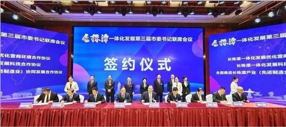 我省高位推進長株潭一體化領(lǐng)導(dǎo)機制下,2021年4月10日,第三屆市委書記聯(lián)席會議《長株潭一體化2021年行動計劃》發(fā)布,三市領(lǐng)導(dǎo)攜手推進長株潭融城一體化建設(shè),長株潭都市圈高速發(fā)展的啟動鍵就此按下。