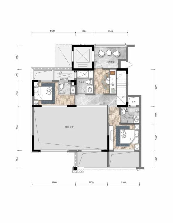 182㎡下疊一層、二層戶型示意圖