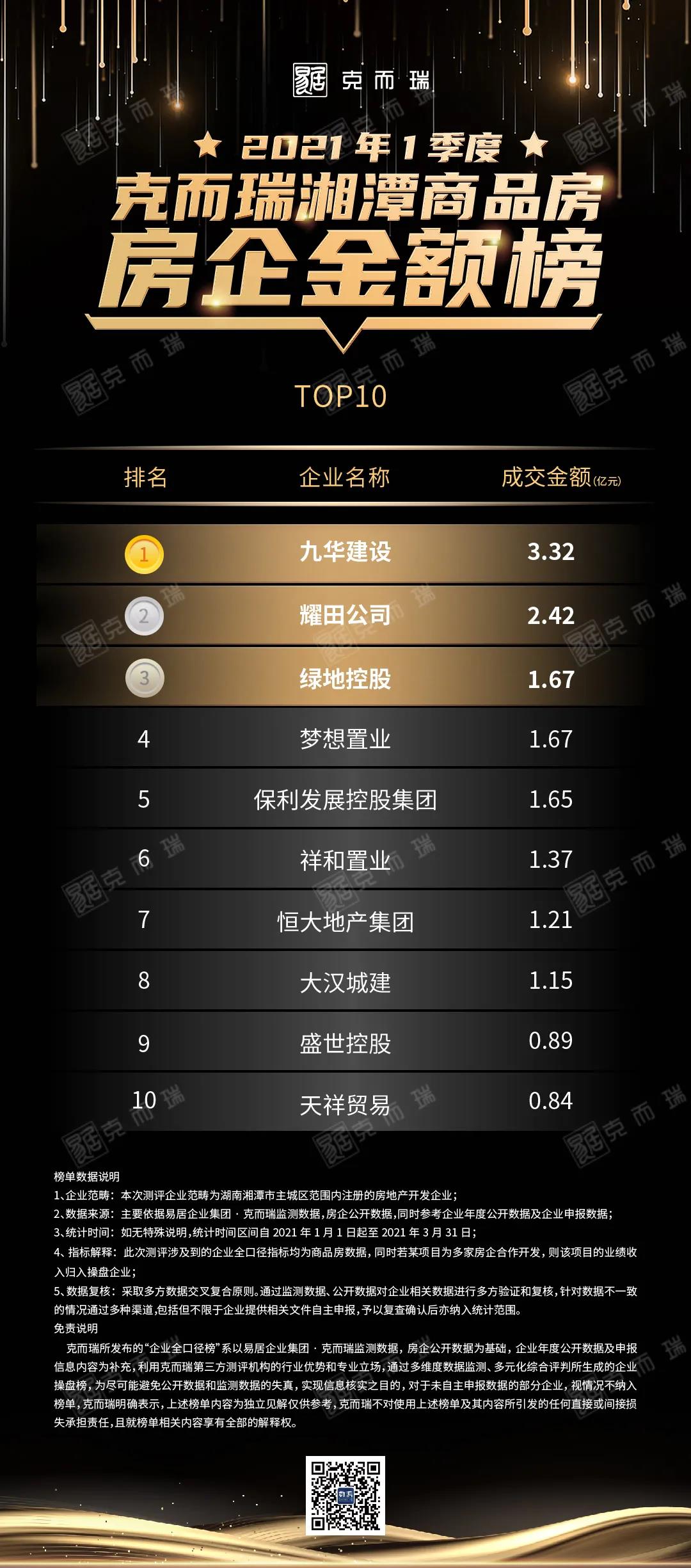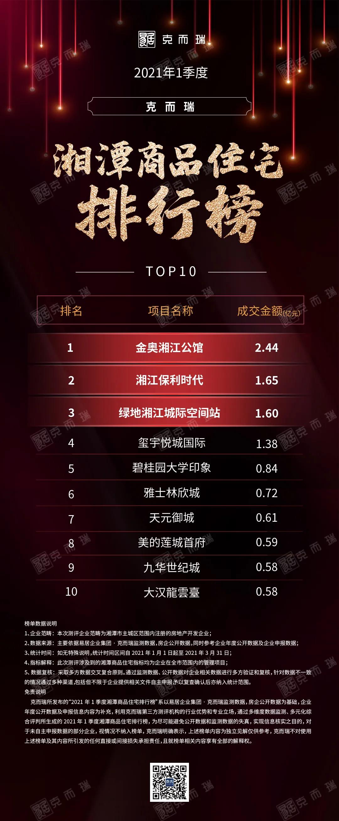 重磅| 克而瑞2021年一季度湘潭樓市排行榜