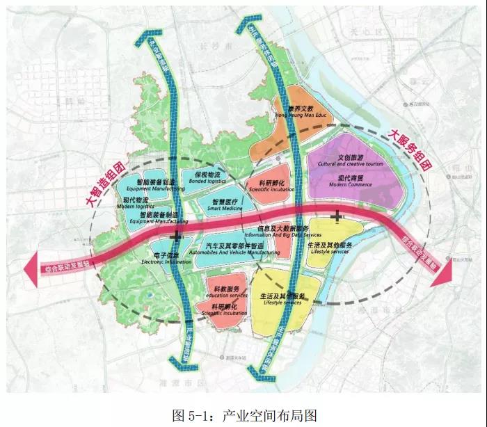 “兩組團(tuán)”:大智造組團(tuán)及大服務(wù)組團(tuán)。其中,大智造組團(tuán)位于長(zhǎng)潭西高速以西的區(qū)域,主要布局智能裝備制造、電子信息產(chǎn)業(yè)、智慧醫(yī)療產(chǎn)業(yè)、汽車(chē)及其零部件智造、現(xiàn)代保稅物流區(qū)等智造產(chǎn)業(yè);大服務(wù)組團(tuán)位于長(zhǎng)潭西高速以東的區(qū)域,主要布局康養(yǎng)文教、文創(chuàng)旅游、現(xiàn)代商貿(mào)、科研孵化、生活及其他服務(wù)、信息及大數(shù)據(jù)服務(wù)、科教服務(wù)等服務(wù)產(chǎn)業(yè)。