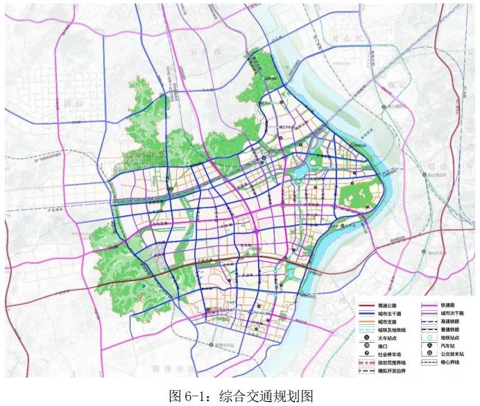 形成沿江路-瀟湘大道、潭州大道、銀蓋路-含浦大道、長(zhǎng)潭西高速、響水大道-望雷大道、伏林大道-黃橋大道六條南北向聯(lián)系干道。