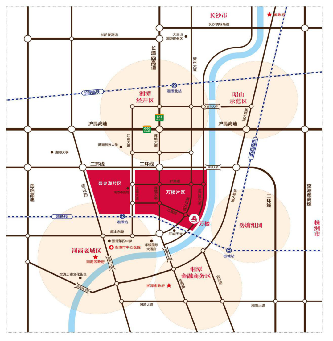 萬樓片區(qū)位于湘潭的中心。向北,它對(duì)接湘潭九華國家級(jí)經(jīng)濟(jì)技術(shù)開發(fā)區(qū),向南,它對(duì)接湘潭老城區(qū)。