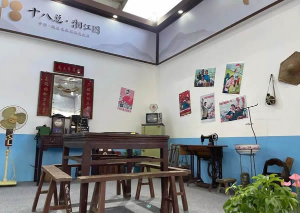 項(xiàng)目展位圍繞“老湘潭 新秀場(chǎng)”主形象進(jìn)行精心打磨,F(xiàn)場(chǎng)重塑湘潭城總生活場(chǎng)景,配備黑白電視、縫紉機(jī)、草帽、老臺(tái)鐘等物件,最大化實(shí)現(xiàn)復(fù)古人文氛圍,于此處為您講解城總故土上升起的這顆文旅新星的價(jià)值所在。