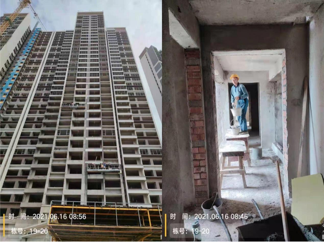 3、16#棟砌體完成、內(nèi)外抹灰完成、鋁合金窗框完成2-33層、屋面完成、外立面完成95%、水電二次預(yù)埋完成、商鋪回填完成30%;