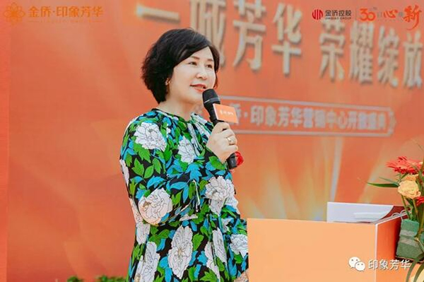 在主持人的隆重介紹中,金僑投資控股集團(tuán)副董事長、總裁劉朝暉女士首先代表集團(tuán)致辭。