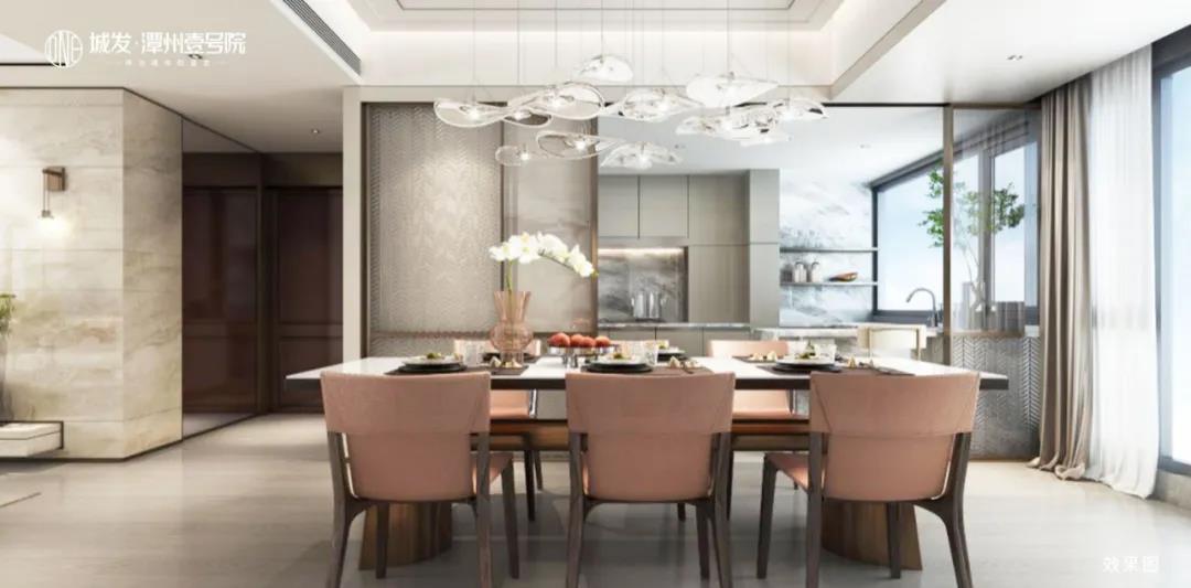 科學(xué)化設(shè)計(jì)客餐廳動(dòng)線,將餐廳+廚房+客廳規(guī)劃為家居三角區(qū),做到動(dòng)靜分離,讓每位家庭成員互不相擾卻聯(lián)結(jié)緊密。