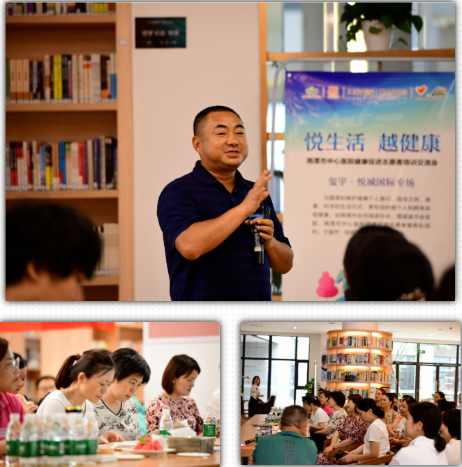 7月3日,“悅生活 越健康”湘潭市中心醫(yī)院健康促進(jìn)志愿者培訓(xùn)交流會于璽宇·悅城國際7000㎡悅鄰生活中心的全齡圖書館成功舉辦。