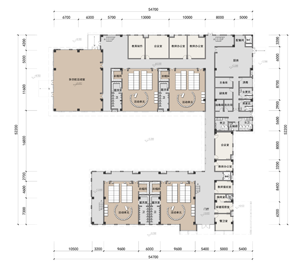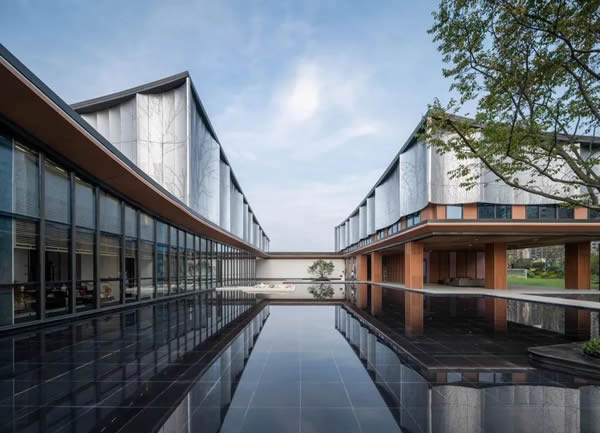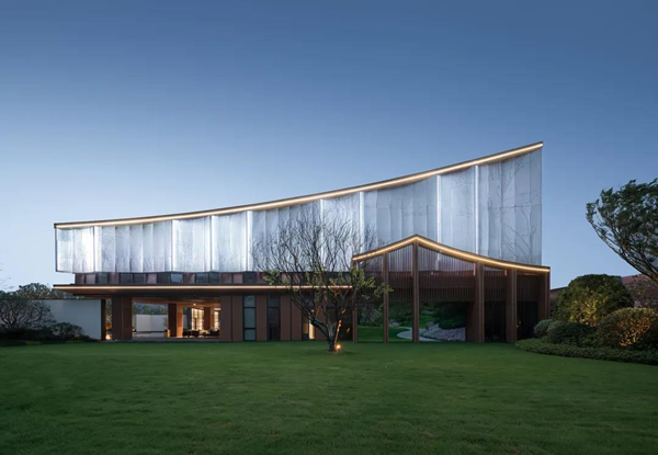 建筑共兩層,布局自然、舒展飄逸。