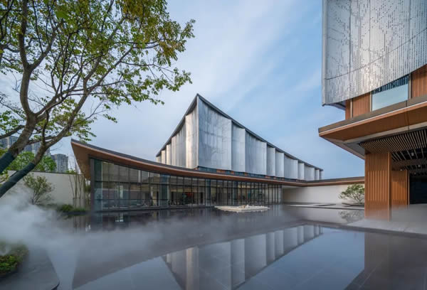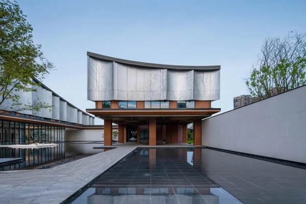 建筑屋頂類似飄落的樹葉、形態(tài)自由。