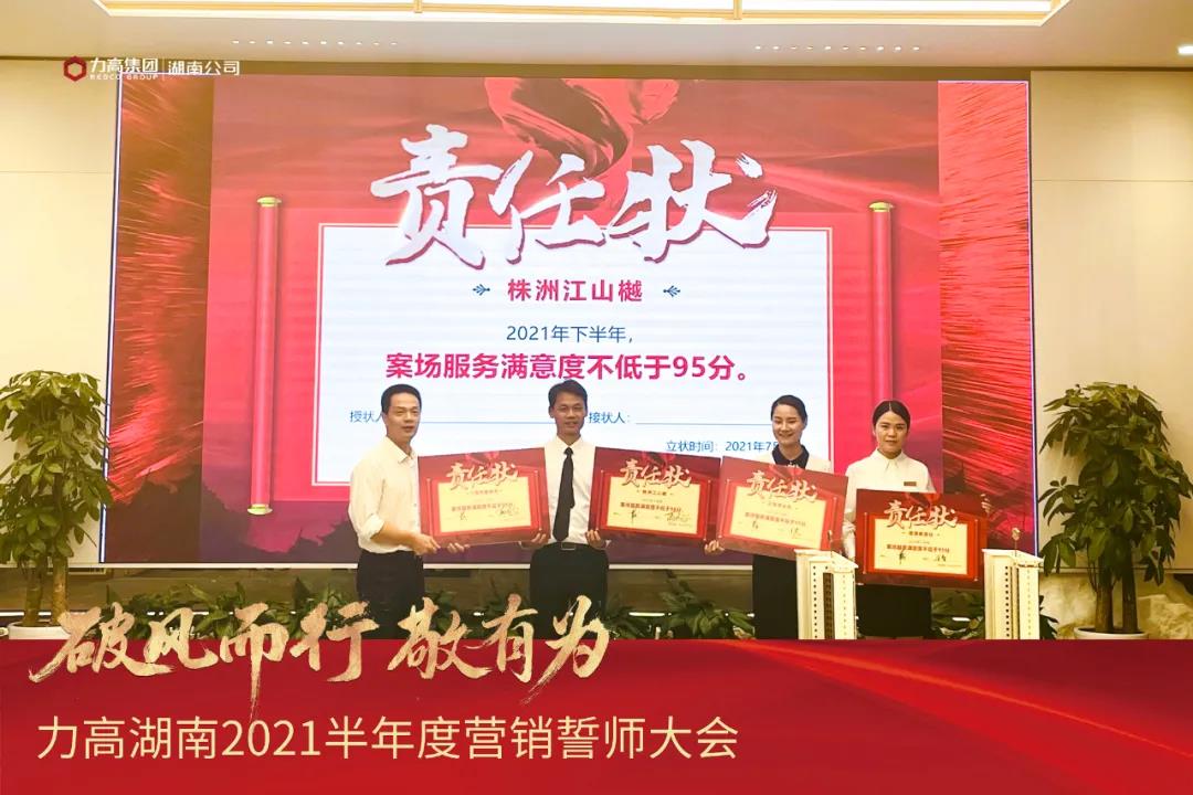 長風(fēng)破浪會有時,直掛云帆濟滄海。為達成項目銷售及回款等各項指標,各項目依次上臺簽訂軍令狀;梁文謙總和楚勇總簽訂湖南公司指標軍令狀;接著由梁文謙總與各項目總簽訂下半年簽約目標和回款目標;最后由楚勇總與營銷負責(zé)人簽訂下半年簽約目標和現(xiàn)金回款目標;軍令如山,軍令狀展示著必勝的信念和決心和展現(xiàn)出不勝不歸的氣勢、所向披靡的斗志。