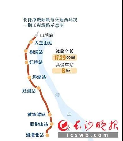 長(zhǎng)株潭城際軌道交通西環(huán)線(xiàn)一期工程起于滬昆高鐵湘潭北站,由南向北沿潭州大道敷設(shè),止于長(zhǎng)沙地鐵3號(hào)線(xiàn)山塘站,線(xiàn)路全長(zhǎng)17.29公里,共設(shè)8座車(chē)站,其中地下站4座,高架站4座。