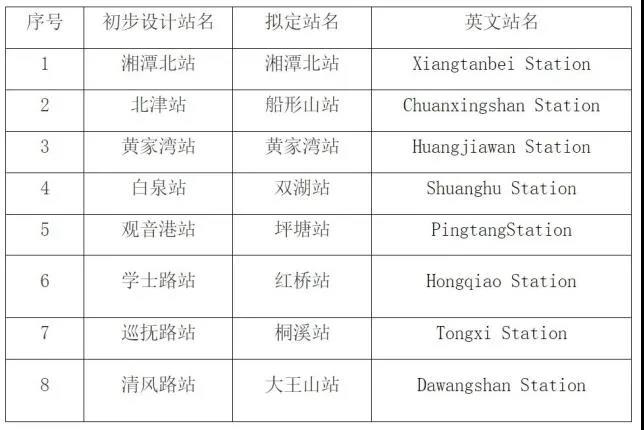由北往南依次為大王山站、桐溪站、紅橋站、坪塘站、雙湖站、黃家灣站、船形山站、湘潭北站。相比較初步設(shè)計(jì)站名,除湘潭北站和黃家灣站沒(méi)有變化外,其他均有調(diào)整。這些站名既體現(xiàn)了軌道交通站點(diǎn)指位功能,又體現(xiàn)了地方文化,符合線(xiàn)路沿線(xiàn)區(qū)域文化及站位特質(zhì)。