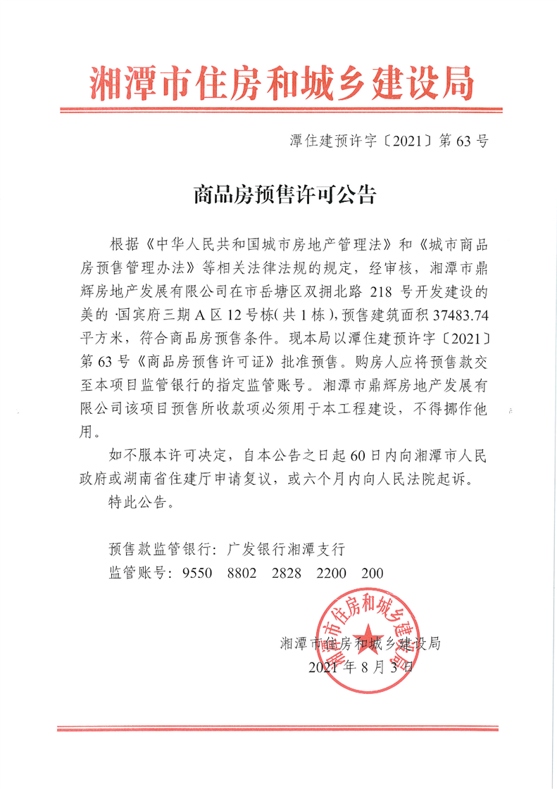關(guān)于美的·國(guó)賓府三期A區(qū)12號(hào)棟(共1棟)預(yù)售許可公告