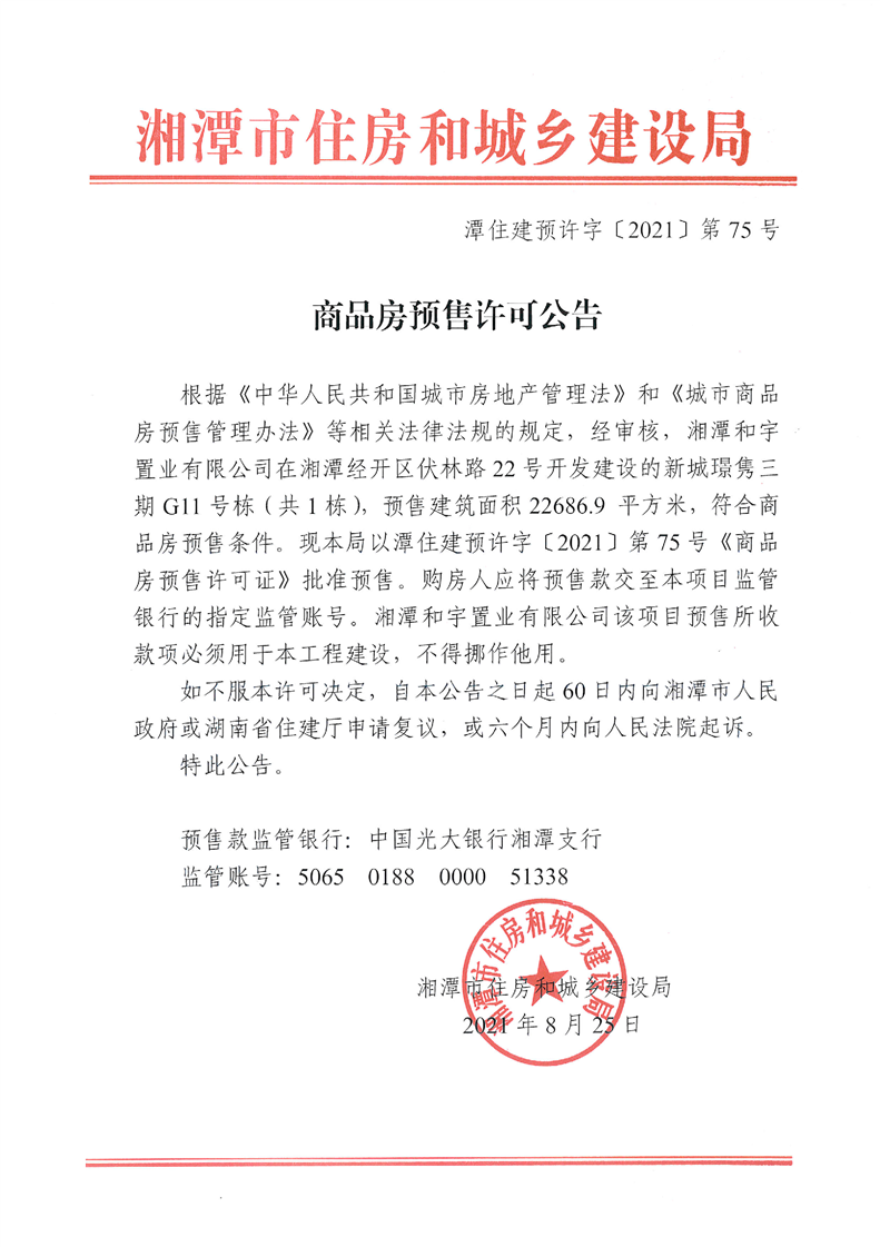 關(guān)于新城璟雋三期G11號(hào)棟(共1棟)預(yù)售許可公告