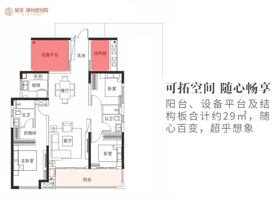 城芯C位,“王炸”戶型——建筑面積約126㎡3+2戶型,戶戶多得兩間房。方正的設(shè)計(jì)格局,布局科學(xué),約17.4㎡全贈(zèng)送結(jié)構(gòu)板及百變X空間,讓生活擁有更多可能。MAX巨幕詩(shī)意生活陽(yáng)臺(tái),盡享閑適時(shí)光。豪華主臥套房個(gè)性品味自成一派……我們致力為每一位懂生活的人,創(chuàng)造出更豐富的生活場(chǎng)景。