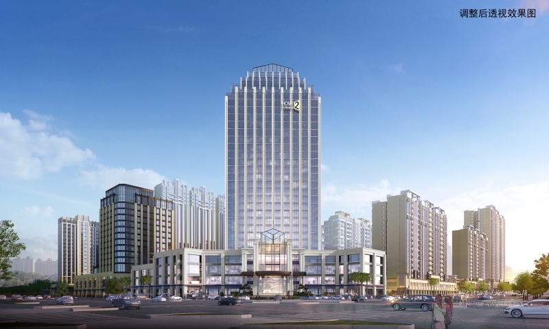 2、根據(jù)酒店功能布置要求,縮減酒店主樓進(jìn)深輪廓,原27米進(jìn)深調(diào)整為21.6米。酒店主樓建筑高度由100米調(diào)整為99.89米。