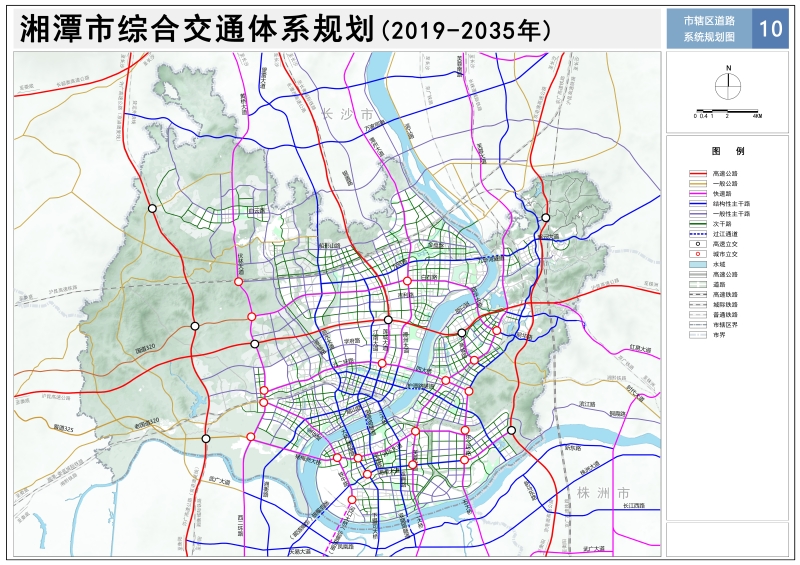 規(guī)劃“七橫五縱”結(jié)構(gòu)性主干路!捌邫M”為白云路及東延線、九昭路-昭云大道、護(hù)潭路、韶山路、河?xùn)|大道、鳳凰路、天易大道;“五縱”為湘衡路、建設(shè)路、江南大道-寶塔路、雙擁路、昭山大道(東二環(huán)北延)。