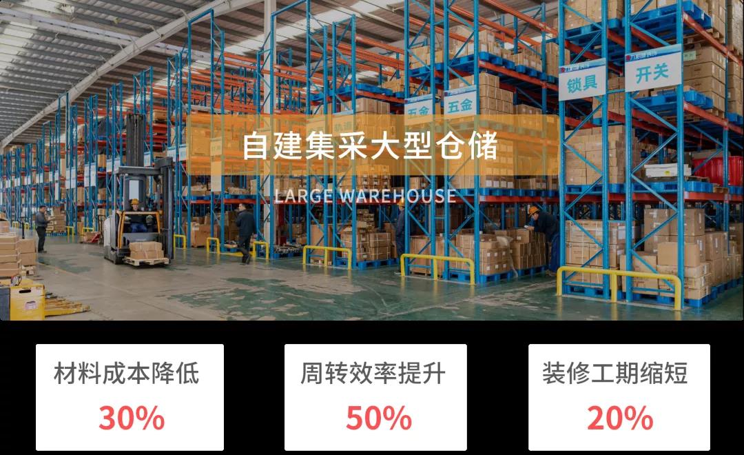 自建大型倉儲(chǔ)物流基地,所有裝修建材、家具、家電、等直接從原廠集中采購,省去一切中間環(huán)節(jié)。能夠讓材料成本有效降低30%,讓材料周轉(zhuǎn)效率提升50%,裝修工期縮短20%,而且不用擔(dān)心售后、品質(zhì),一站式服務(wù)更有保障。品質(zhì)保真,價(jià)格更優(yōu),九根藤真正做到了工廠成本價(jià)裝修,用最實(shí)惠的價(jià)格把裝修做好做全才是真正為客戶著想。