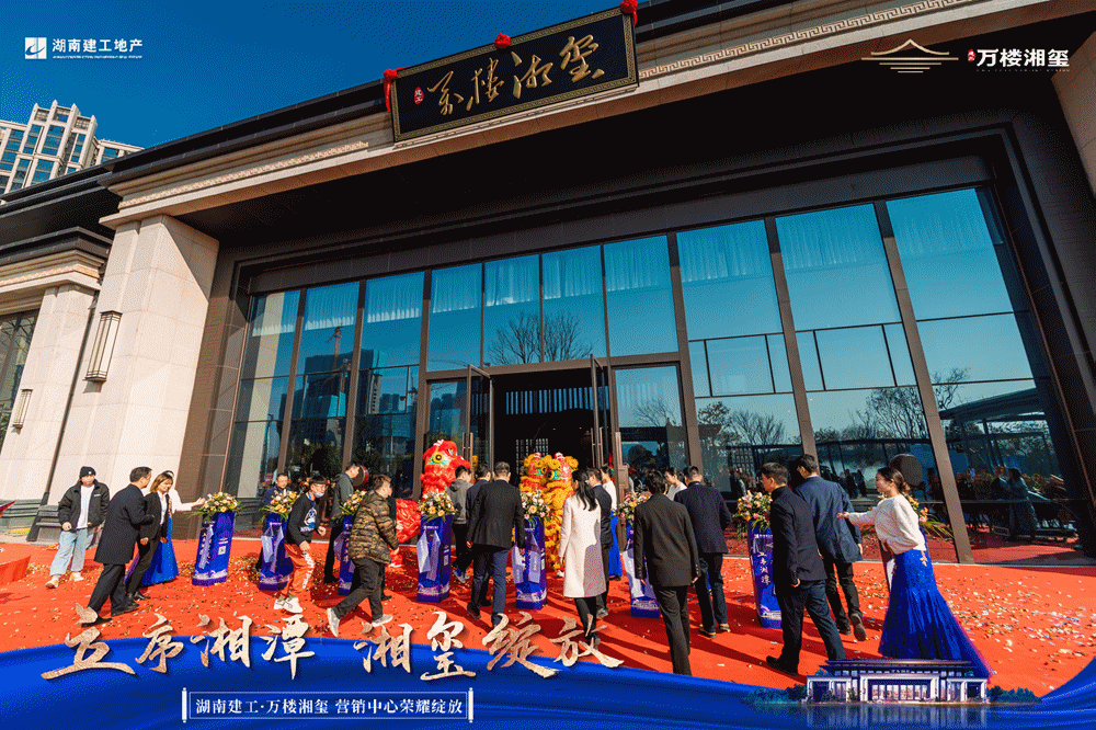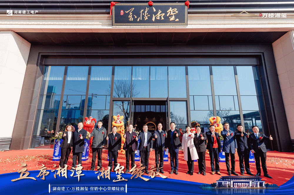醒獅助興,現(xiàn)場的氣氛升至高位,在全場熱烈的掌聲中,紅幕拉開,大氣的“萬樓湘璽”門匾赫然呈現(xiàn),現(xiàn)場禮炮齊鳴,彩花飛揚。