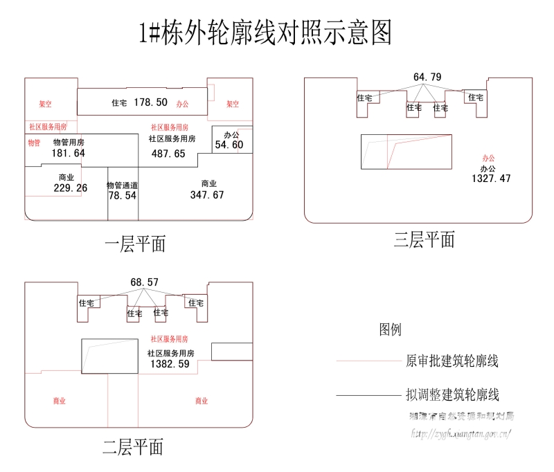 1#棟第一層至第三層建筑面積減少136.51平方米,其中社管增加10.37平方米,住宅減少13.29平方米,商業(yè)增加2.88平方米,物管增加48.77平方米。相比原審批規(guī)劃總圖,總建筑面積減少136.51平方米,計(jì)容建筑面積減少1.09平方米,綠地率保持不變。