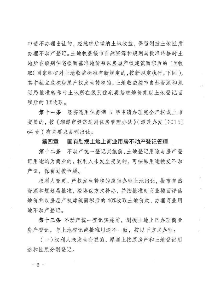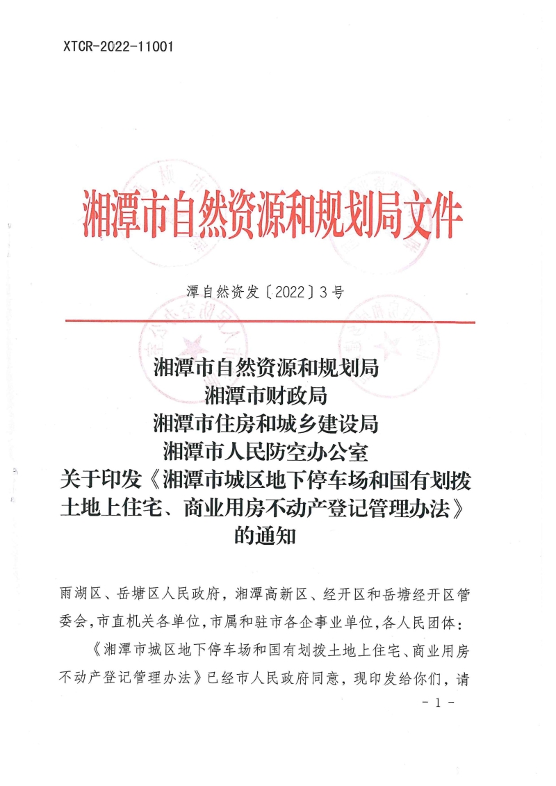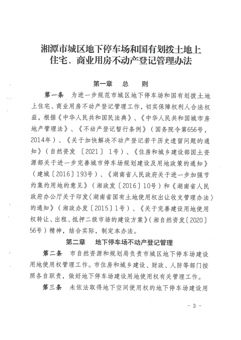 關于印發(fā)《湘潭市城區(qū)地下停車場和國有劃撥土地上住宅、商業(yè)用房不動產(chǎn)登記管理辦法》的通知