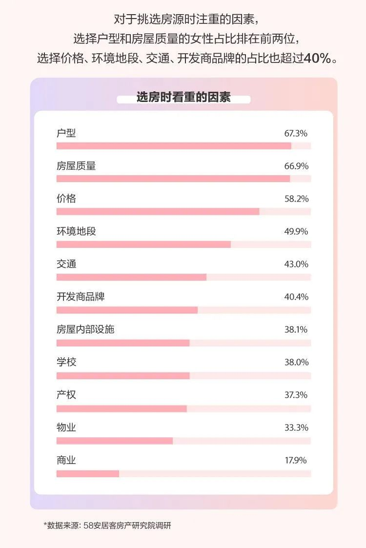 就連波伏娃在《第二性》也曾寫道:“財(cái)產(chǎn)和名聲一旦獲得,就像內(nèi)在的品德一樣,可以提高女人的性吸引力”。其實(shí),女性置業(yè)者也有自己的“買房哲學(xué)”。女性們對(duì)房子的追求不再僅只是滿足單純的居住功能,而是更加追求品質(zhì)和居住的改善。
