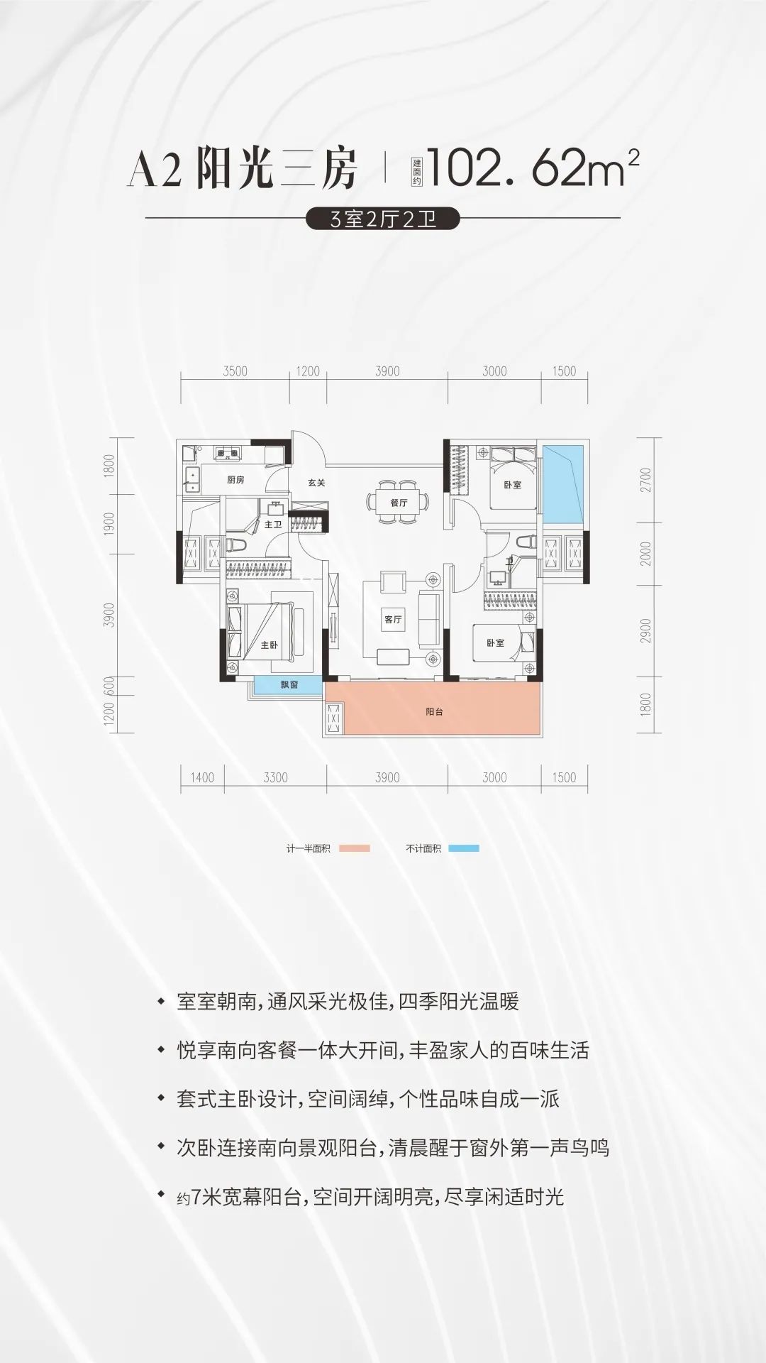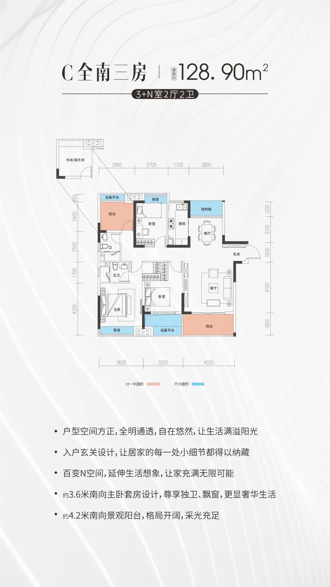 4.本宣傳資料所涉及的戶型僅供示意參考,其戶內(nèi)門、裝修、家具、家電、陳設(shè)等非交付標(biāo)準(zhǔn),不屬于交付范圍。不同戶型的面積尺寸,功能布局,空間分割、門窗/管井形態(tài)位置等均有不同;剪力墻可能存在局部變化;相同戶型因樓棟、單元、樓層等差別,局部結(jié)構(gòu)、面積等也可能不同,具體以雙方簽訂的商品房買賣合同約定為準(zhǔn)。