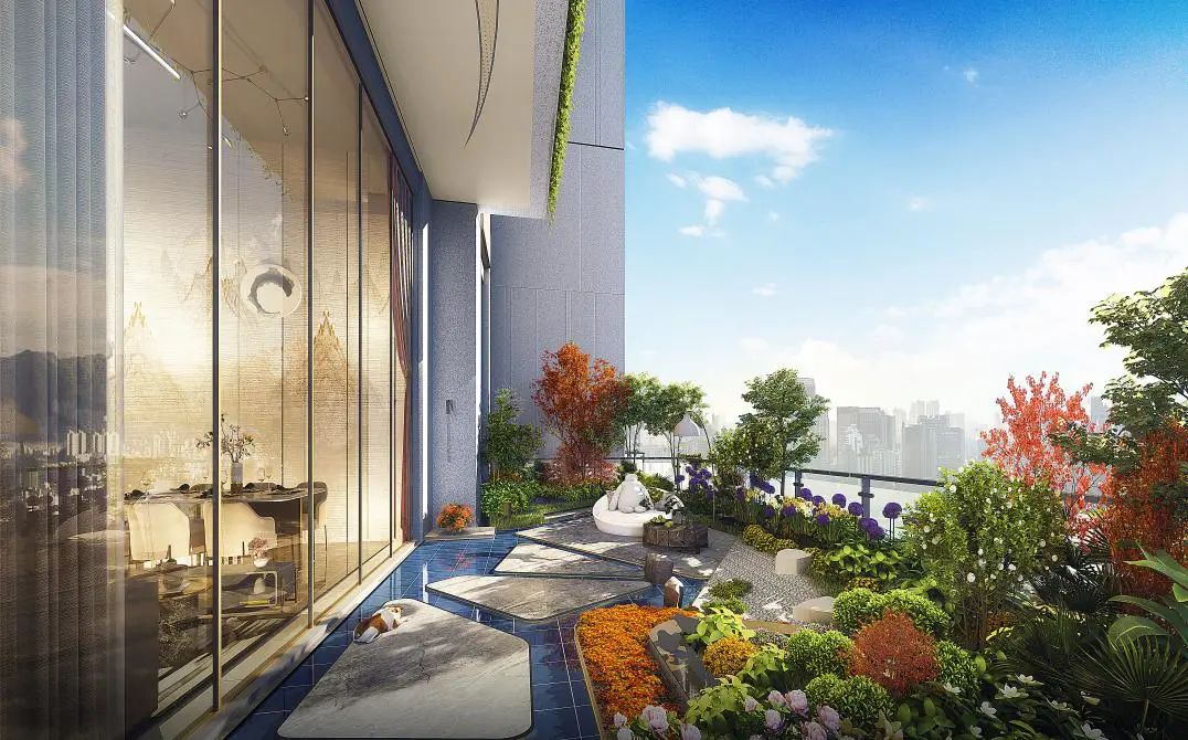湘潭環(huán)球港,打破空中院子與客廳之間的區(qū)隔感,IMAX級大尺度闊景設(shè)計,將客廳與院子相連,把室內(nèi)的空間視野放大,讓風景入院,開啟奢適生活。即使蟄居于家,在花園和開闊的空間中,不用出門也能將夏日萬象攬入眼里。