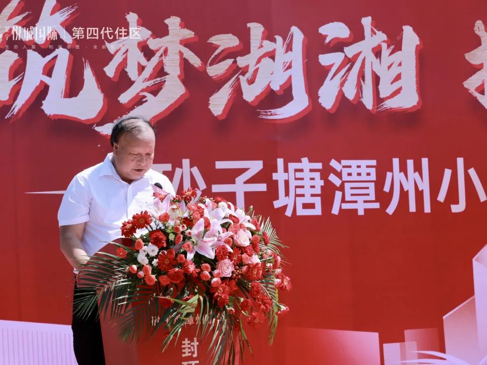 隨后,長沙市雨花區(qū)人民政府教育督導(dǎo)室總督學(xué)徐宇明、湘潭市九華項(xiàng)目建設(shè)協(xié)調(diào)委員會(huì)副主任蔡德強(qiáng)輪流上臺(tái)致辭,祝愿砂子塘潭州小學(xué)建設(shè)圓滿成功,并對(duì)學(xué)校的未來寄予真切厚望。