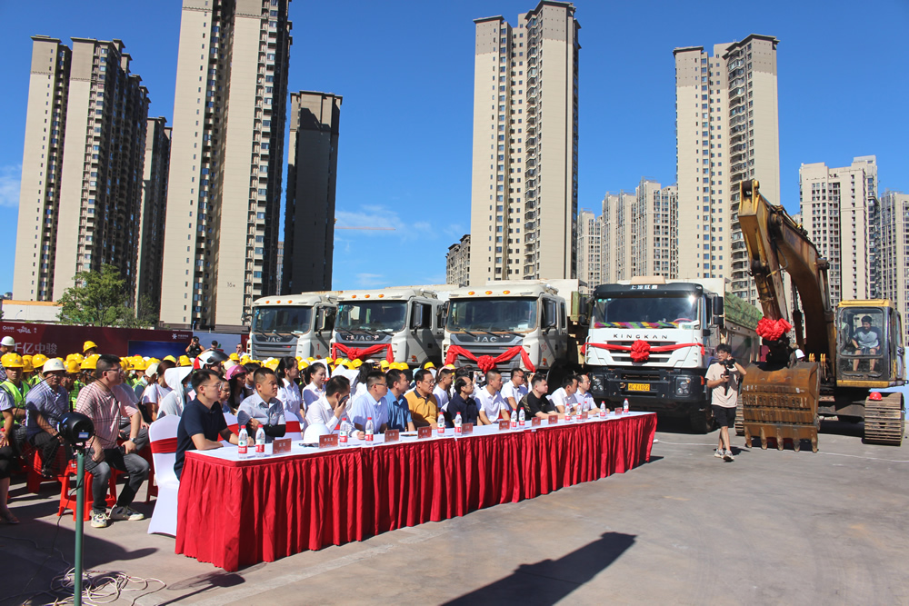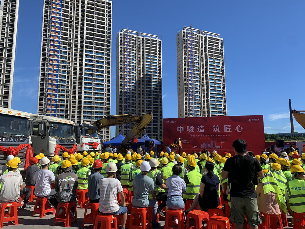 湘潭房產(chǎn)網(wǎng)8月5日訊 8月5日早上9時08分,湘潭中駿世界城工地提速動員大會暨新聞發(fā)布會在中駿·世界城營銷中心左側(cè)停車場隆重舉行,現(xiàn)場工人、業(yè)主、同行等近200人共同見證這一時刻。