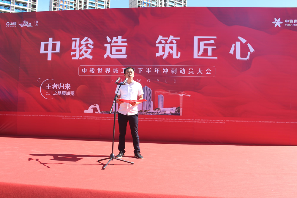 大會現(xiàn)場,中駿世界城項目領(lǐng)導(dǎo)、施工單位領(lǐng)導(dǎo)先后表態(tài)發(fā)言。