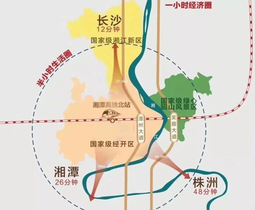 在高速交通時代,地鐵+高鐵樞紐中心,即可激活一座城市。作為長株潭城市群幾何中心的湘潭九華片區(qū),即是激活湘潭城市向上的能量原點。
