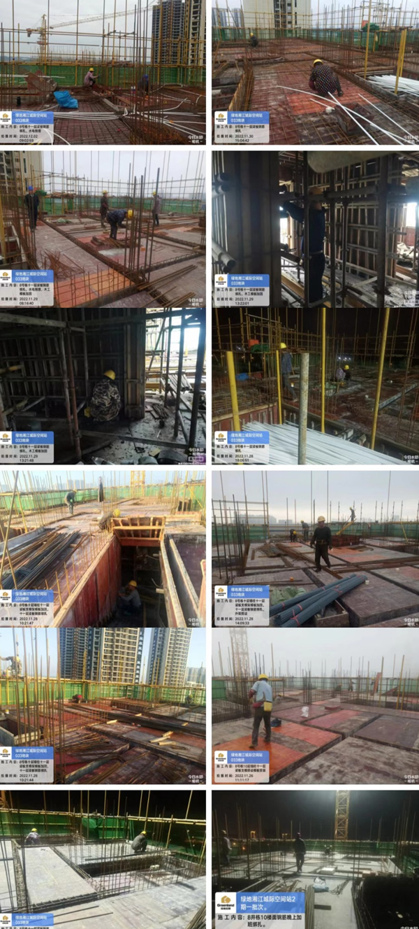 8#棟:十層墻柱十一層梁板鋼筋綁扎完成100%,十層墻柱十一層梁板模板安裝完成100%。十層墻柱十一層梁板混凝土澆搗。十一層墻柱十二層梁板鋼筋綁扎完成50%,十一層墻柱十二層梁板模板安裝完成65%。