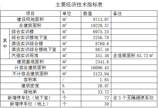 1.此次改擴(kuò)建項(xiàng)目為產(chǎn)教融合基地,用地面積8713.97㎡,總建筑面積19220.37㎡;新建內(nèi)容包括一棟6F的綜合實(shí)訓(xùn)樓、1棟10F的酒店綜合實(shí)訓(xùn)樓及1棟1F的汽修實(shí)訓(xùn)。