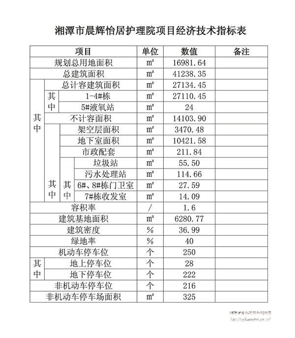 項(xiàng)目簡介:湘潭市晨輝怡居護(hù)理院項(xiàng)目(原項(xiàng)目名稱為湘潭市晨輝怡居養(yǎng)護(hù)院)因項(xiàng)目更名等原因,申請(qǐng)重新核發(fā)《建設(shè)工程規(guī)劃許可證》,項(xiàng)目用地位于雨湖區(qū)昭潭街道易家湖與規(guī)劃金橋路交匯處,規(guī)劃用地面積為16981.64㎡?偨ㄖ娣e為41238.35㎡(其中總計(jì)容建筑面積為27134.45㎡),項(xiàng)目容積率為1.6,建筑密度為36.99%,綠地率為40%,現(xiàn)將該項(xiàng)目總圖、效果圖及經(jīng)濟(jì)技術(shù)指標(biāo)予以公示,以最終審批結(jié)果為準(zhǔn)。