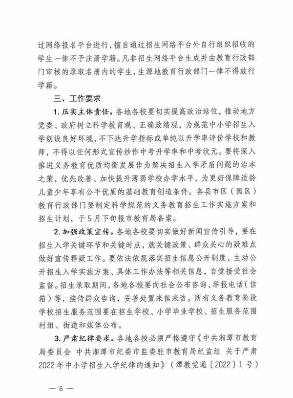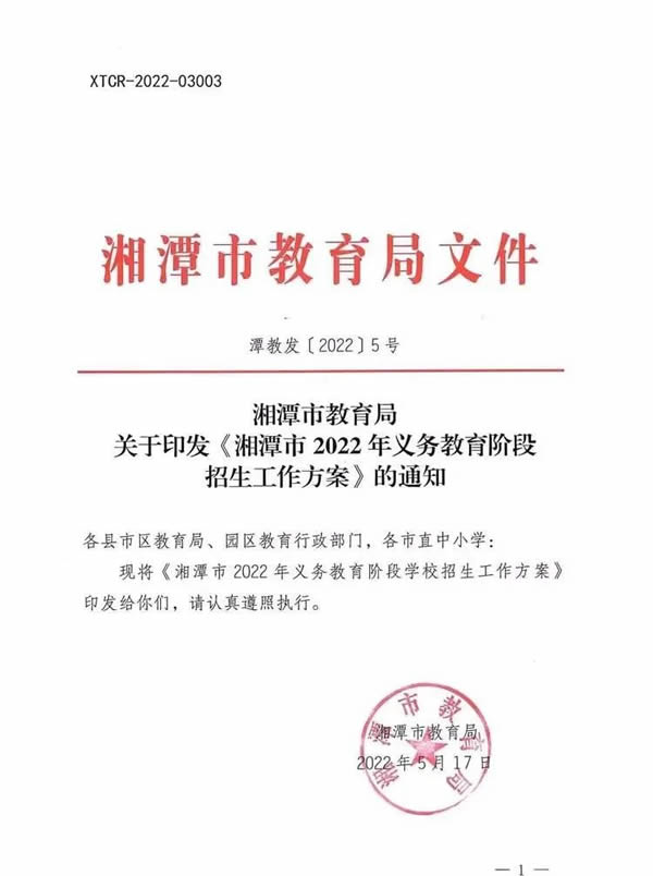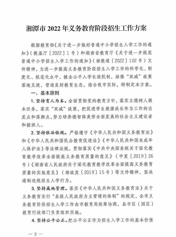 附件如下:潭教發(fā)〔2022〕5號湘潭市教育局關于印發(fā)《湘潭市2022年義務教育階段招生工作方案》的通知。